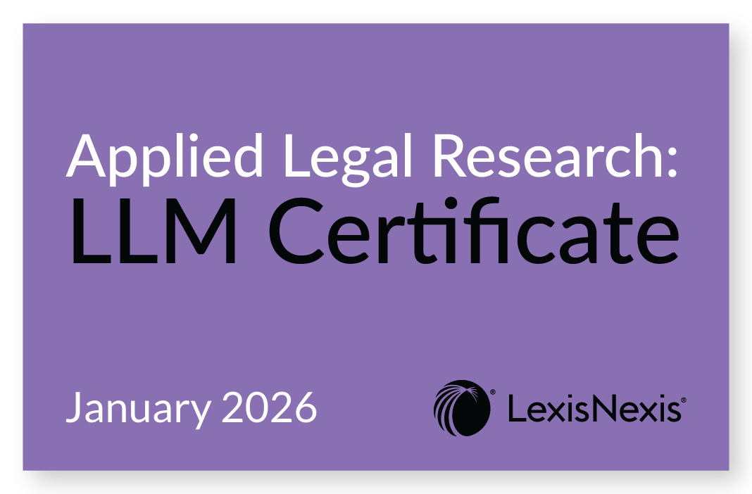 This certificate confirms the completion of LexisNexis® Applied Legal Research for LLM on January 30, 2026.